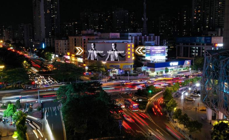 廣州新大新百貨“8K春天”屏使用弧形轉(zhuǎn)角專利技術(shù),屏幕轉(zhuǎn)角完全貼合與適應(yīng)大廈建筑結(jié)構(gòu);位于廣州市中心北京路步行街路口,該路口的節(jié)假日高峰人車流量可超400萬人次。