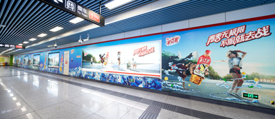 | 位置:主要分布于每個站點的站廳、通道、軌行區,是地鐵廣告中最常見的一種形式,覆蓋全站客流。 效果:色彩鮮艷,畫面明亮,視覺沖擊力強,面對受眾近距離展示,接觸時間長,閱讀時間充分,迫視性強;封閉式環境,干擾性小,廣告接受度高。 |