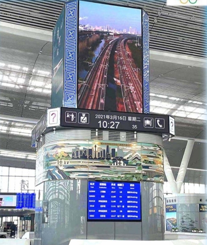 北京清河站led廣告-候車室-中央服務(wù)臺(tái)led四面屏廣告