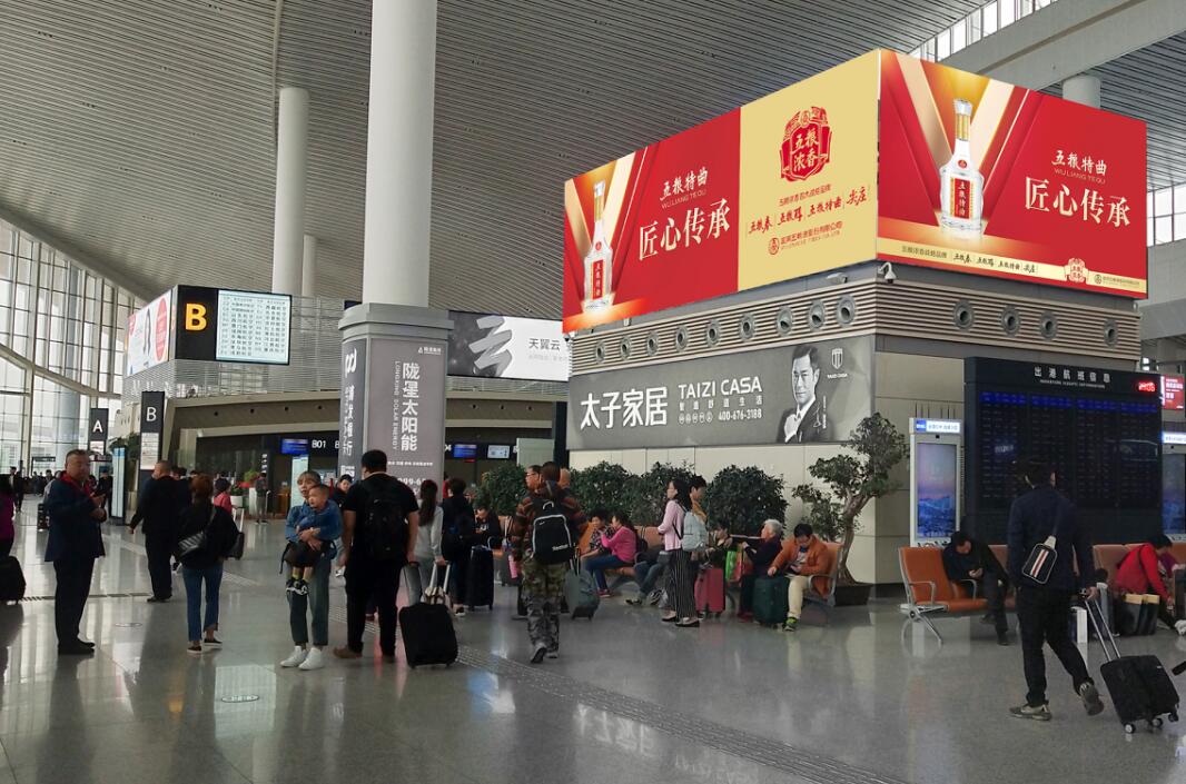 | 該媒體位于機場出發大廳,占據了機場的安檢口、值機區等關鍵有利的位置,媒體到 達率相對較高。旅客在此登 機安檢滯留時間長,易引起 旅客觀注,屬100%被迫受眾 媒體和強制瀏覽。 媒體形式:燈箱(雙面) 尺寸:6m*3m 數量:3 位置:航站樓出發大廳 刊例價(3月/面):26萬 刊例價(6月/面):48萬 刊例價(年/面):80萬 |