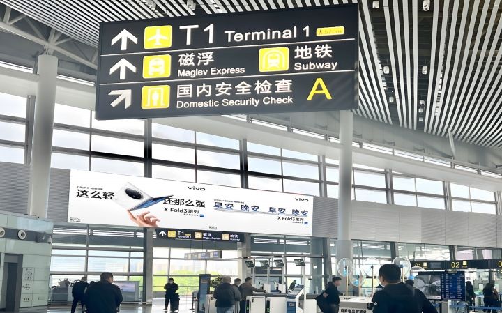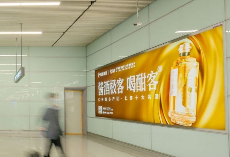 媒體面對磁浮地鐵通道出口處,全方位覆蓋磁浮到達及離開機場旅客。 不遠處為旅客休息區,具有受眾距離近,具有醒目、全面、沖擊力強的展示特點, 受眾人群廣,宣傳效果佳。