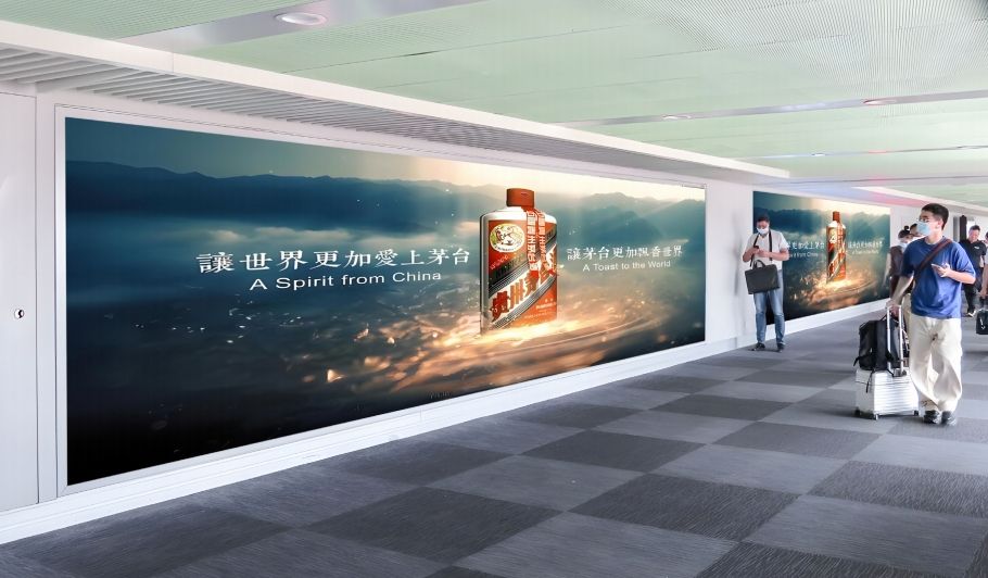 媒體位于 T2 出發層,設置在磁浮地鐵接駁連廊玻璃墻上方,直面國內安檢 A 口客群、 從機場到地鐵磁浮的換乘客群。單塊媒體尺寸規格大,架設位置高,視野穿透力強, 廣告內容受眾時間長,具有很好的的展示效果。