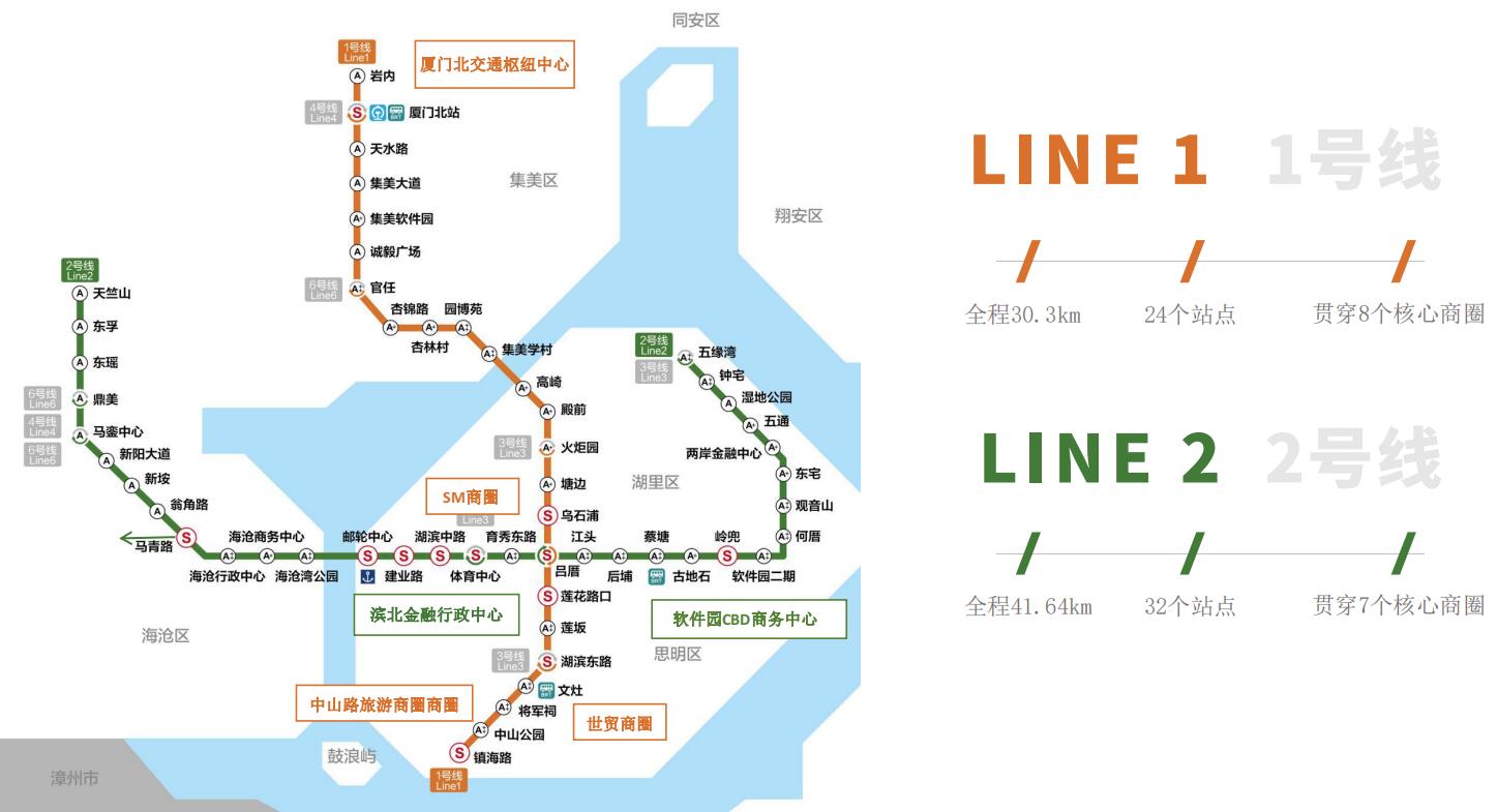 作為廈門首條運營的地鐵線路,起于鎮(zhèn)海路站,經過思明區(qū)、湖里區(qū)、集美區(qū),直達觀光勝地中山路步行街,經過島內生活區(qū)、商業(yè)區(qū),縱貫島外